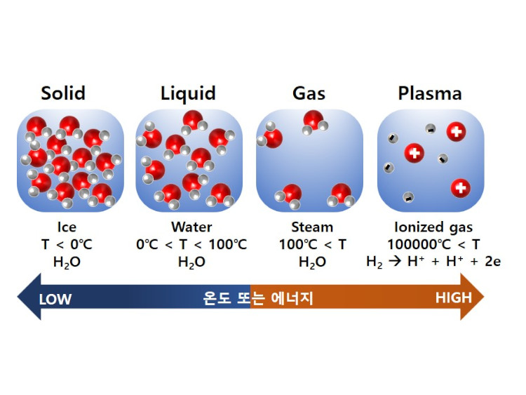 분자 결합 상태에서 에너지를 받아 분자에서 분자에서 분리되는 현상을 ‘해리’라고 하는데, 해리 현상으로 생성된 전자, 양이온 및 라디컬 등을 모두 합하여 플라즈마라고 부릅니다.